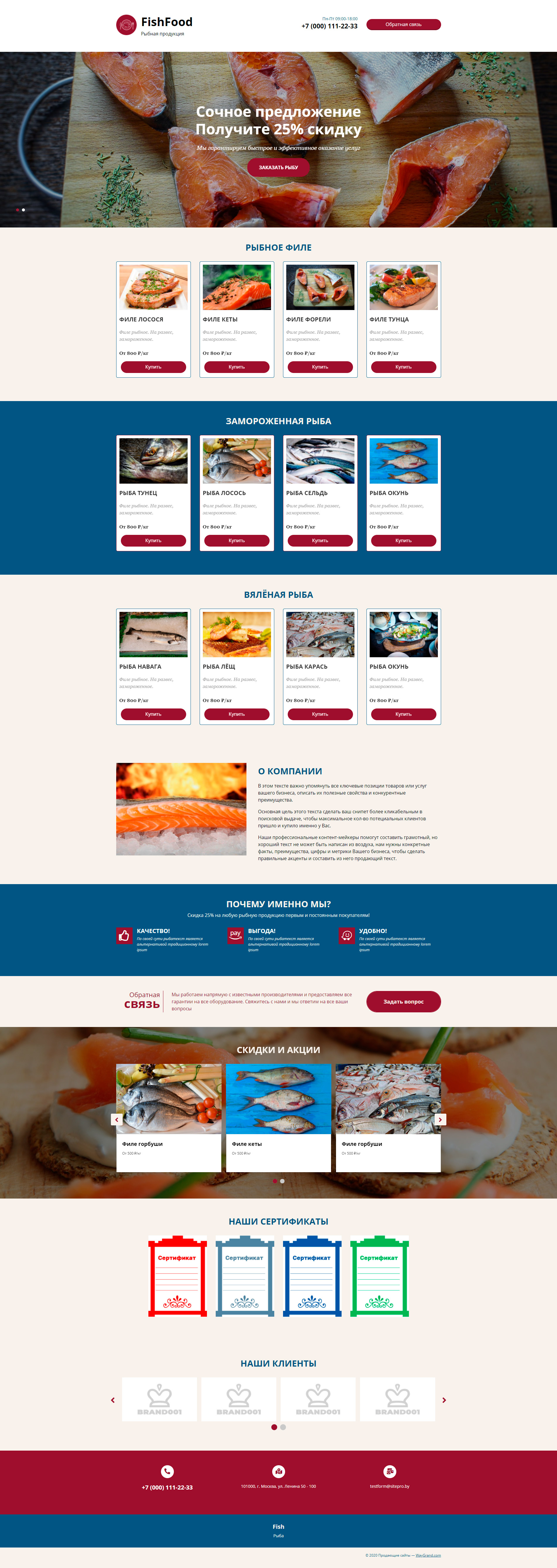 Закажите готовый продающий сайт лендинг #1731203 в Нижнем Тагиле за 1-3 дня «под ключ»: свёрстан, отрисован и готов к рекламе. Тематика шаблона «Рыбная продукция».