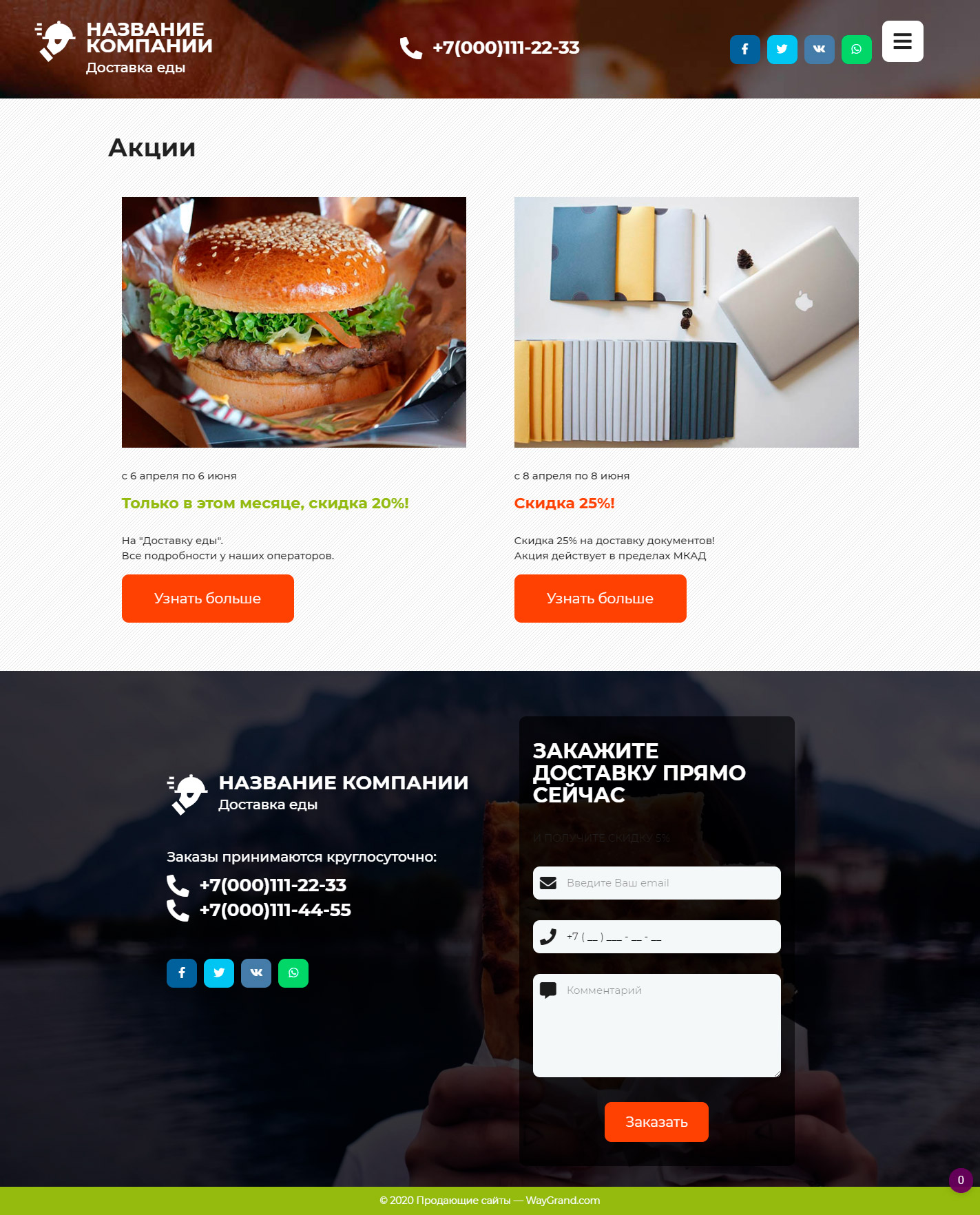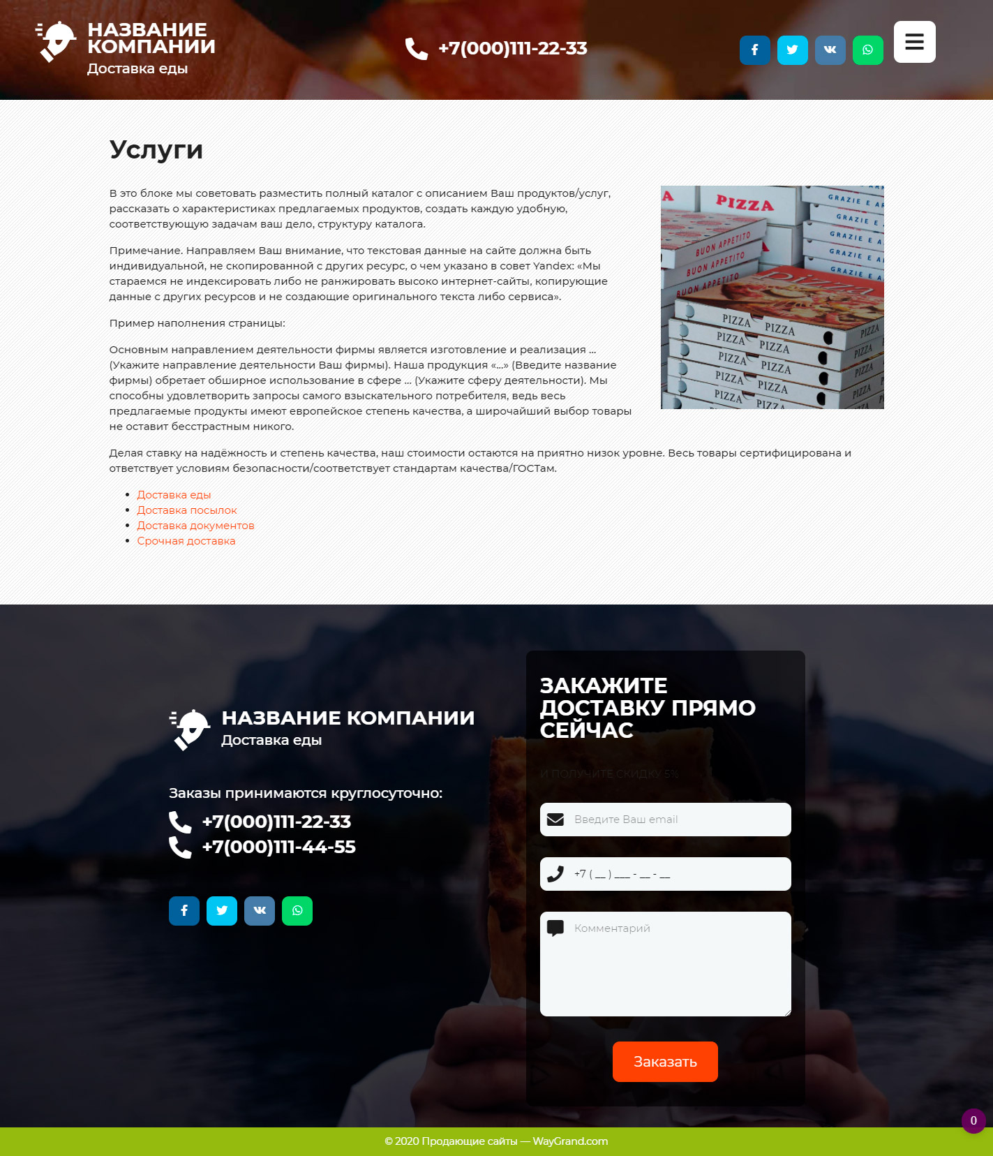 Готовый сайт визитка Курьерская доставка еды #3071302 — Купить на WayGrand.com в Нижнем Тагиле